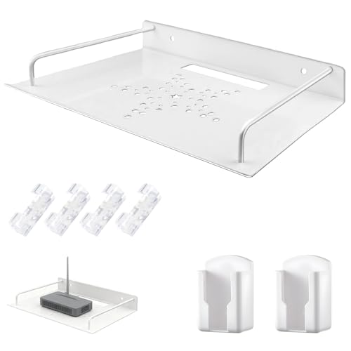 SzSFQ Router Shelf Space Aluminium Router Stand Easy to Install for WiFi Router Set-top Box TV Accessories with 2 Remote Holder Wall Mounted