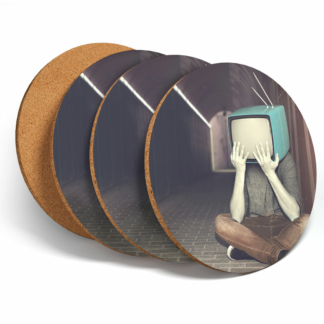 4 Set - TV Box Head Boy Vintage Coasters Kitchen Drinks Coaster Gift #14115