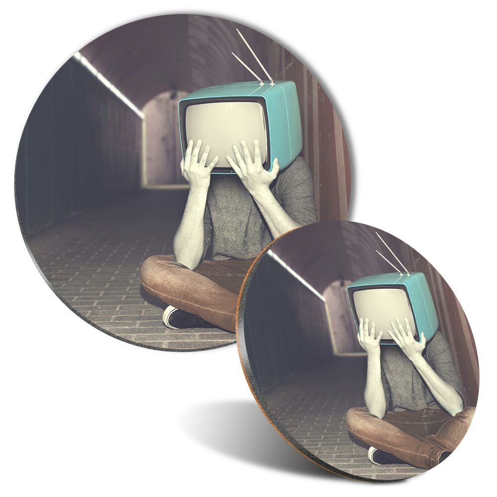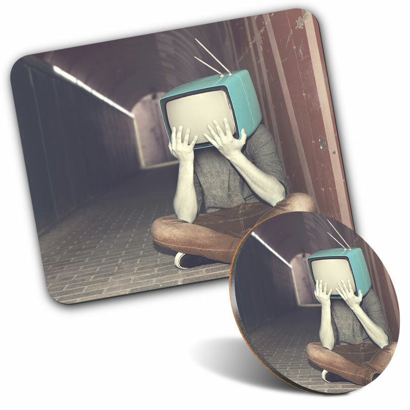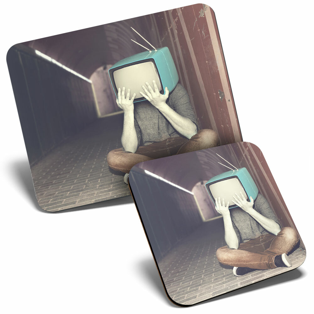 Mouse Mat & Coaster Set - TV Box Head Boy Vintage Fantasy Art #14115