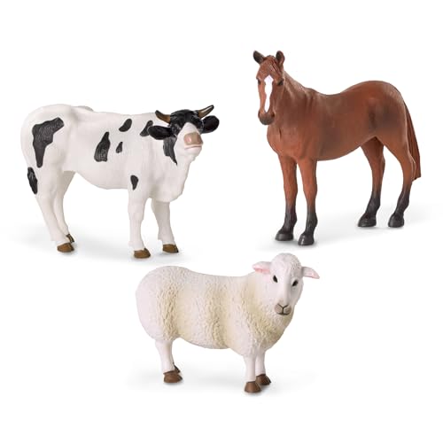 TERRA by Battat – Realistic Farm Animal Toys 3 Pieces Set – Plastic Horse, Bull & Sheep Figurines for Imaginative Play, Educational Toddler Toys, Farm Playset for 3+ Years