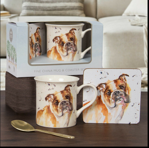 English Bulldog Mug & Coaster gift set Leonardo collection bull dog brown white.
