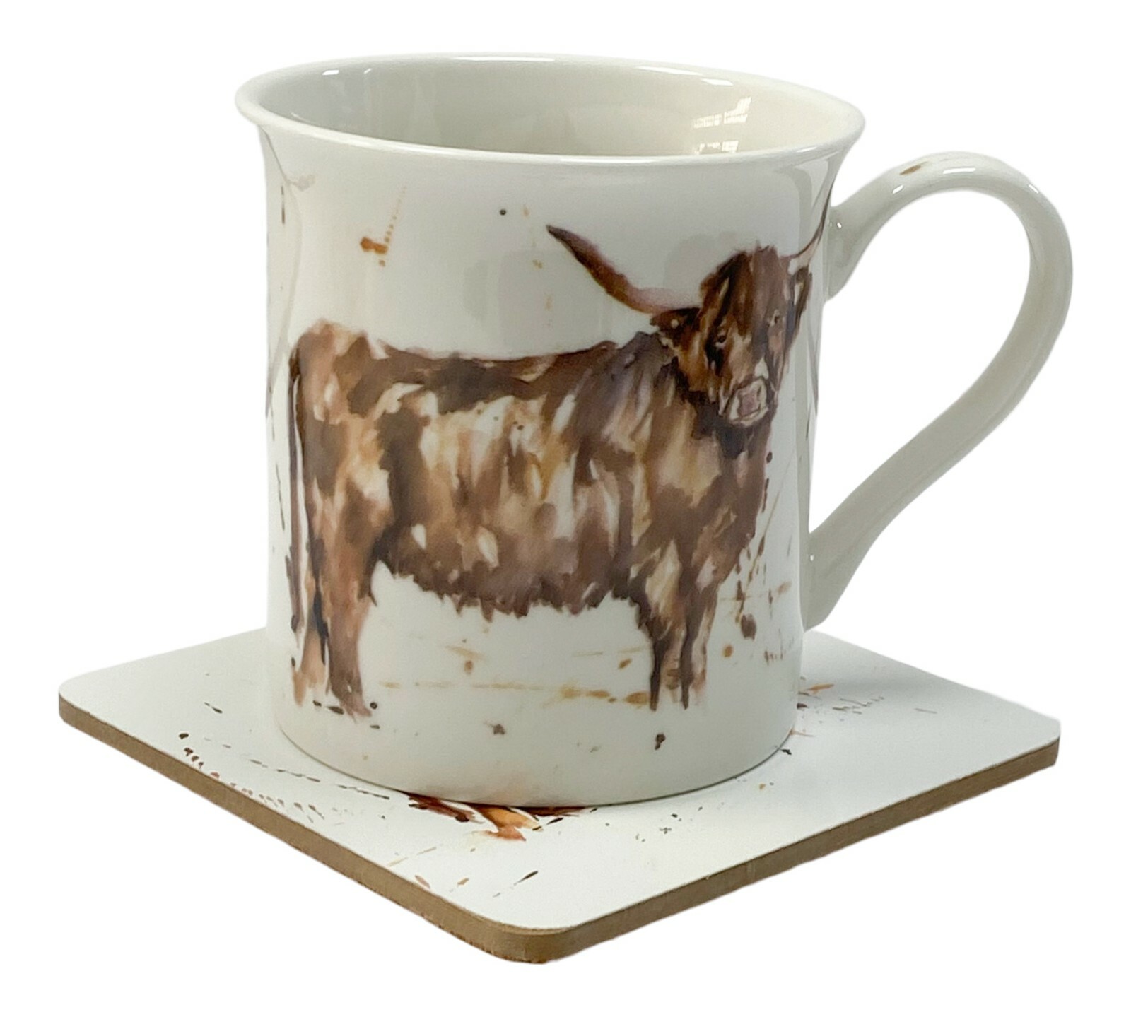 Set Of 4 Leonardo Fine China Large Mugs & Coaster Gift Set Country Bull Theme