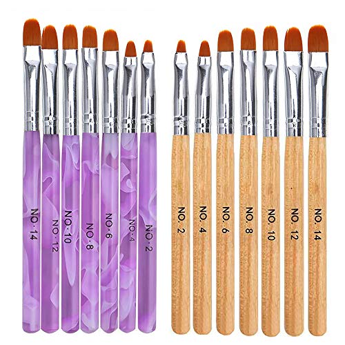 Mwoot 14 PCS Nail Painting Brush, Acrylic Nail Art Brush Set Nylon Hair Brush Pen Tool for Nail Art Design Painting Salon and DIY Purple
