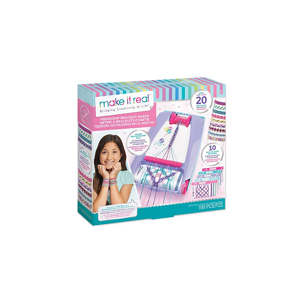 Make It Real Friendship Bracelet Maker Kit - Craft Up to 20 Stylish Bracelets with 100 Beads & Threads - Fun DIY Jewelry Set for Girls & Tweens -