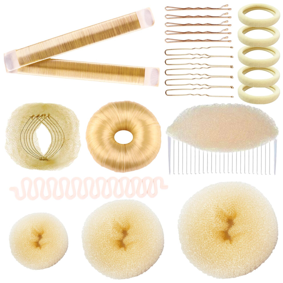 Blonde Sponge Volume Hair Bases Set Bump it Up Inserts Hair Styling Tools Bump Up Combs Clips Sponge Hair Bun Updo Accessories for Women Girl DIY Hair
