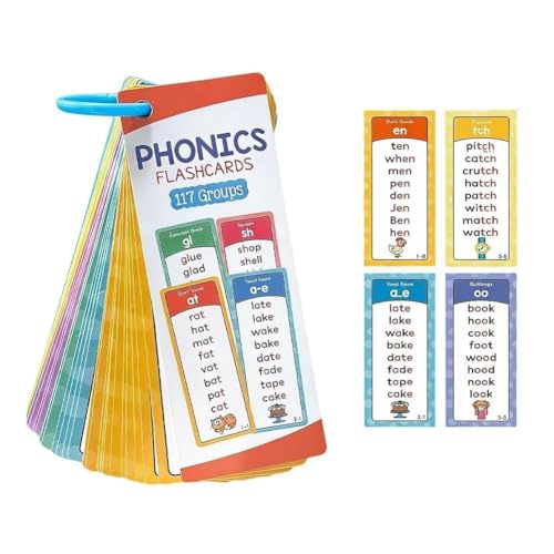 Phonics Word Cards, 117 Sound Groups & 900+ Rhyming Words Flash Cards for Preschool, Phonics Word List Set, Early Learning Educational Toy, Short and Long Vowels, Blends, Sight Words (1pcs)