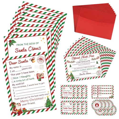 COCHIE Letter to Santa Kit, Letters from Santa, Christmas Writing Set Includes Christmas Wishlist, Nice List Certificate, Red Envelopes, Stickers, Seals, Address Labels