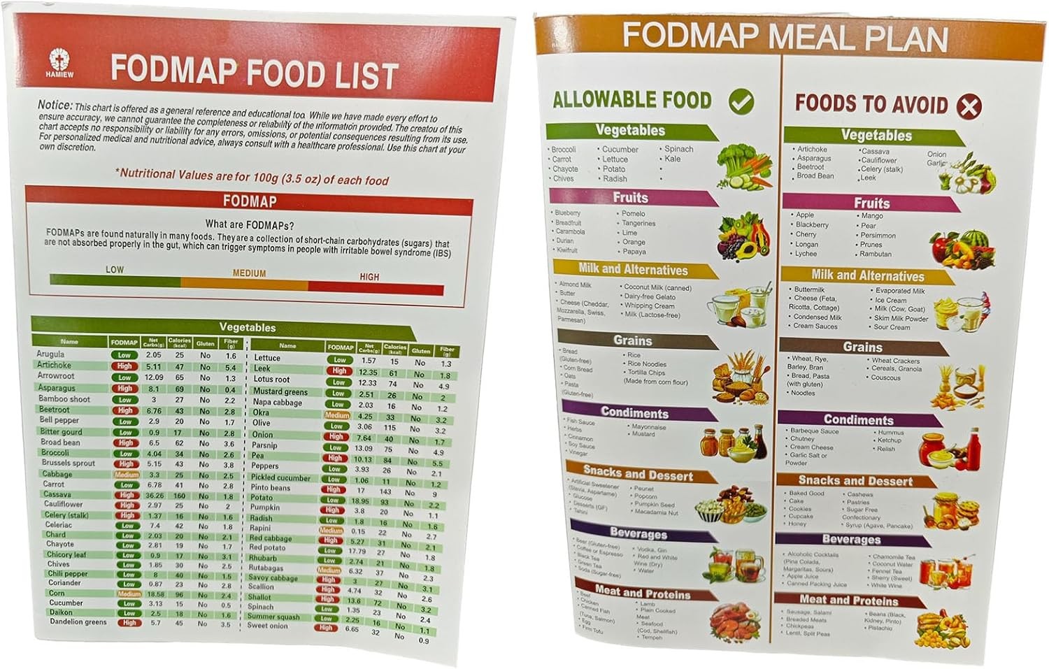 suction Low FODMAP Diet List, Set of 2 FODMAP Charts, Food Meal Plan Guide for