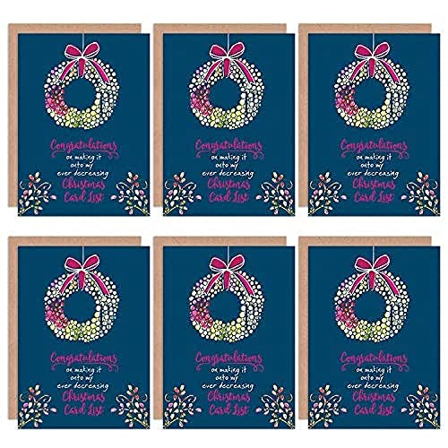 Christmas Cards Funny Sarcastic Christmas List Humour Set Xmas Blank Greeting Cards With Envelopes Pack of 6