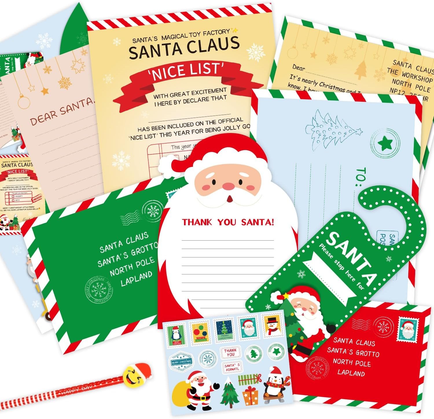 Santa's Reply Letter Set - Nice List Kids Children Christmas Xmas Gift Envelope