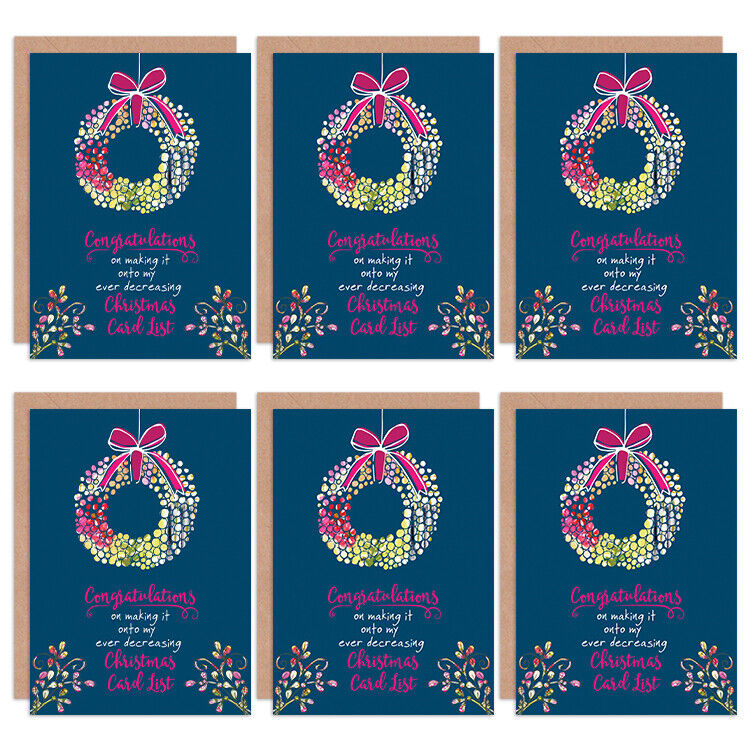 Christmas Cards x6 Funny Sarcastic Christmas List Humour Set Xmas XMPACK019_CP