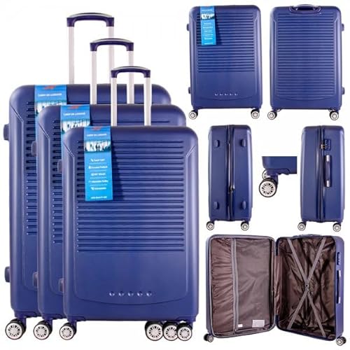 MF Handbags Set of 3 Travel Trolley Suitcases – 4 Wheel Spinner, Scratch-Resistant, Lightweight Hard Shell Luggage with Combination Lock, Detachable Wheels (28", 26", 20") (Navy)