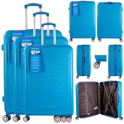 MF Handbags Set of 3 Travel Trolley Suitcases – 4 Wheel Spinner, Scratch-Resistant, Lightweight Hard Shell Luggage with Combination Lock, Detachable Wheels (28", 26", 20") (Light Blue)