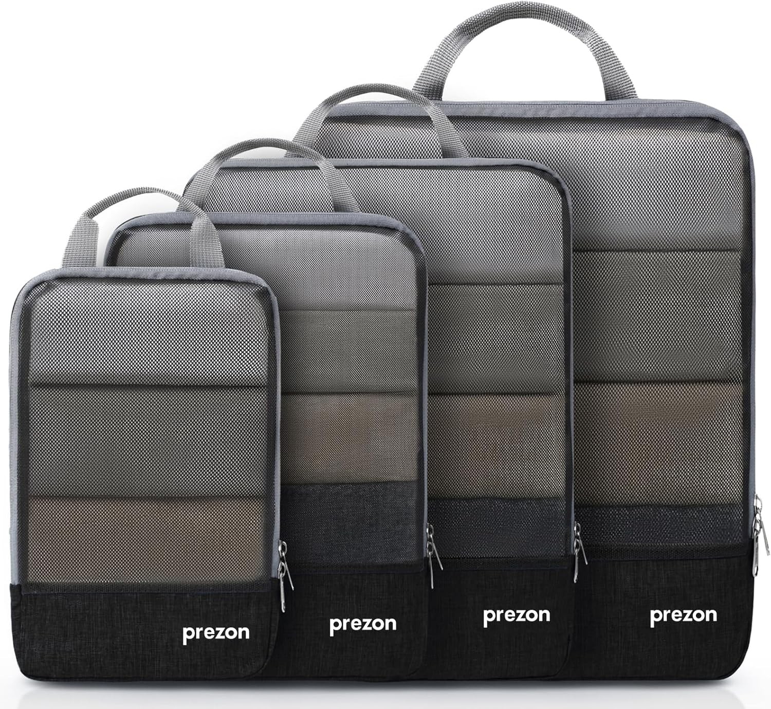 Prezon Compression Packing Cubes Set of 4, Black Luggage Organisers for Travel S
