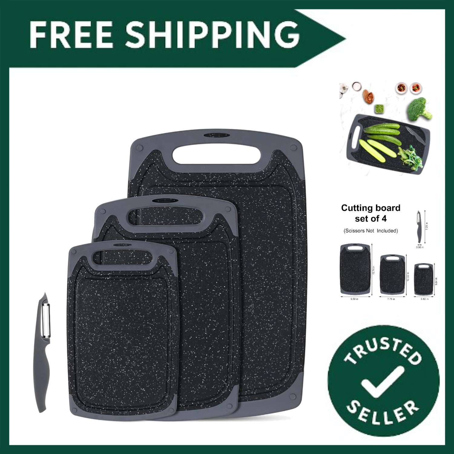 Chopping Board Set, Kitchen Cutting Boards with Non-Slip Feet and Deep Drip Juice Groove, 3PCS BPA Free Plastic Chopping Boards Dishwasher Safe Cutting Board, Black