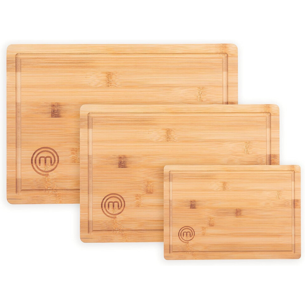 MasterChef Wooden Chopping Board Set of 3, Bamboo Cutting Boards for Kitchen, R