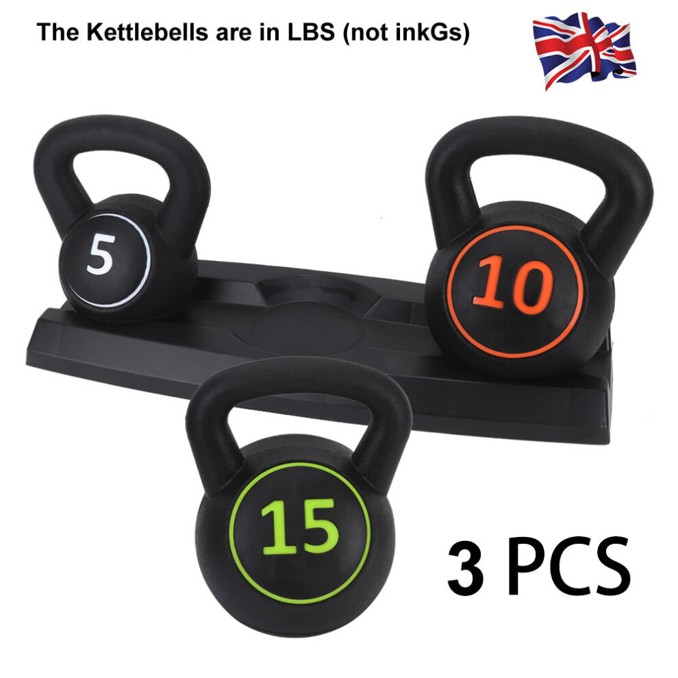 3pcsKettlebell Set Kettlebells Weight Weights Sets Exercise Gym + Rack