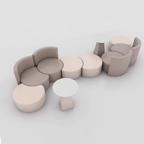 KIBONCY Cream-Colored Asymmetrical Reception Set: Sofa, Chairs & Table Combo for Creative Cafe, Training Institute, Office Lobby, Modern Business Lounge(C)