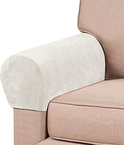 LINGKY Thick Velvet Stretch Armrest Covers for Chairs and Sofas Armchair Covers for Arms Couch Arm Covers Armrest Covers for Sofa Non Slip (Ivory,Set of 2)