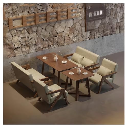 KIBONCY Solid Wood Cafe Furniture Set, Leather Upholstered Sofa Chairs and Table, for Business Living Dining Room Guesthouse Dessert Shop(F)