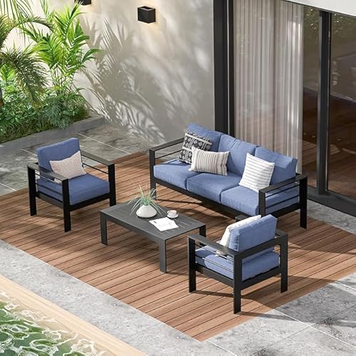 Wisteria Lane Modern Outdoor Patio Aluminium Furniture Set,Four Colourways, with Sofa, Chairs, Loveseats and Coffee Table, Perfect for any garden (Grey/Blue, Coffee Table Set)