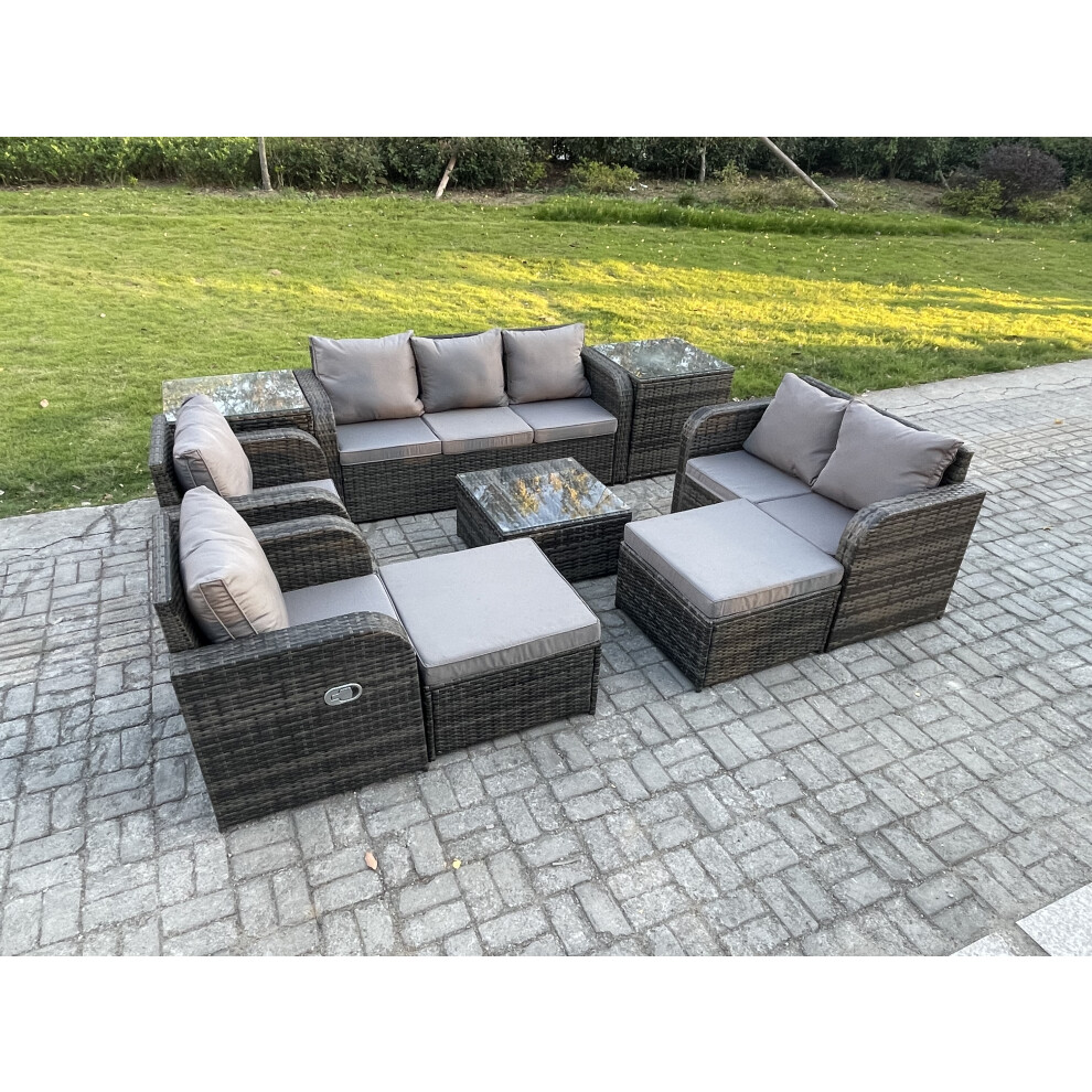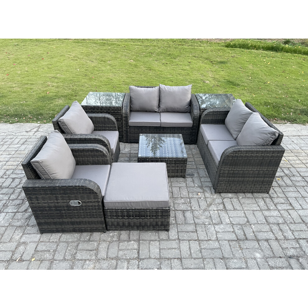 Fimous 7 Seater Rattan Sofa Set Outdoor Garden Furniture Set with Loveseat Sofa Reclining Chairs 2 Side Tables Dark Grey Mixed