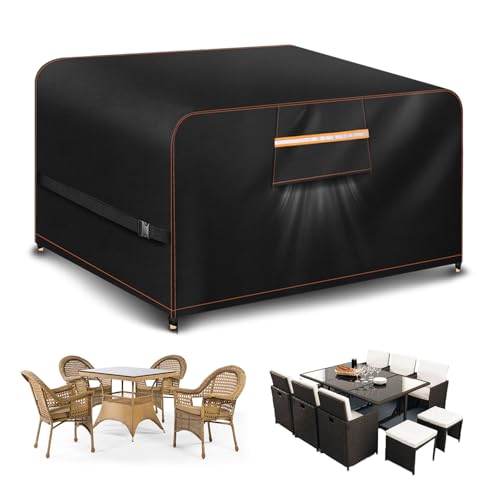 Aoretic Outdoor Garden Furniture Covers Waterproof with Air Vent Square Garden Table Cover Waterproof for Round Patio Bistro Set Rattan Sofa Chairs Outside Seating 250x250x90CM 420D Oxford Fabric