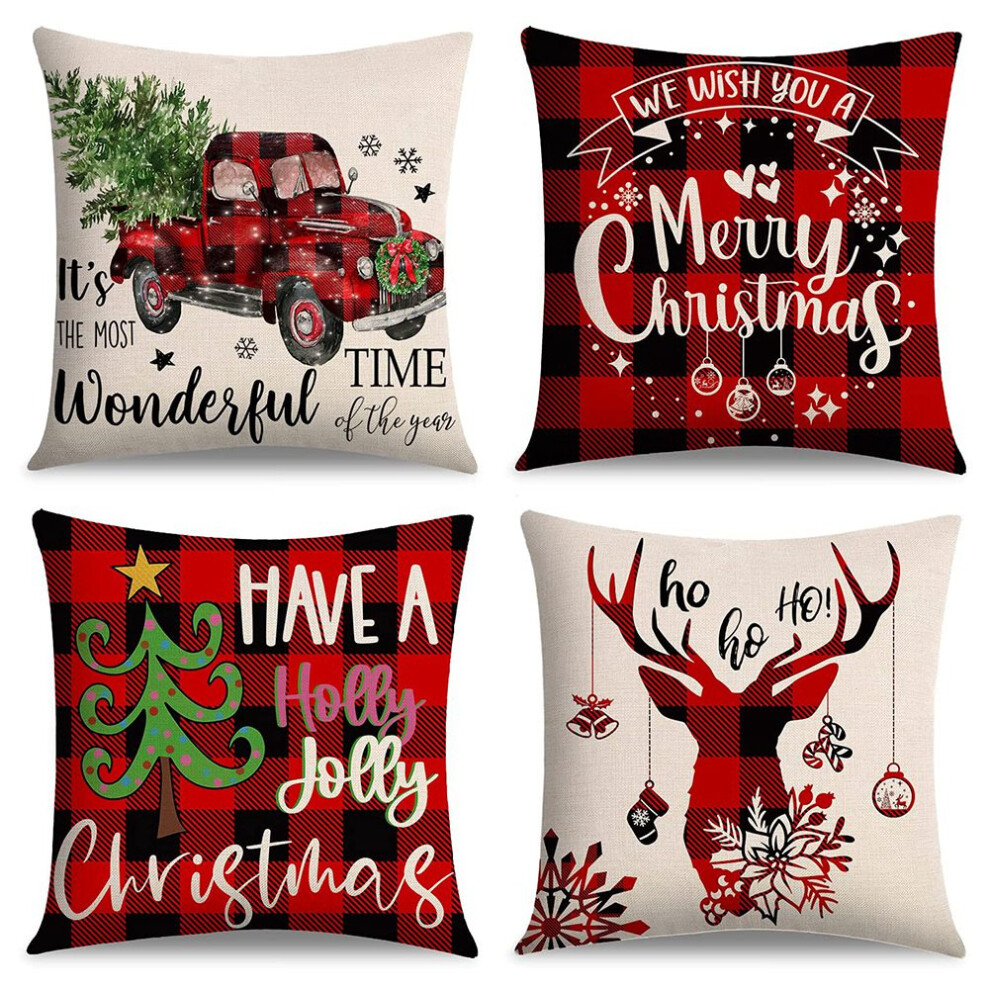 Christmas Pillow Covers 18X18 Set of 4, for Sofa Chairs Seating Bench