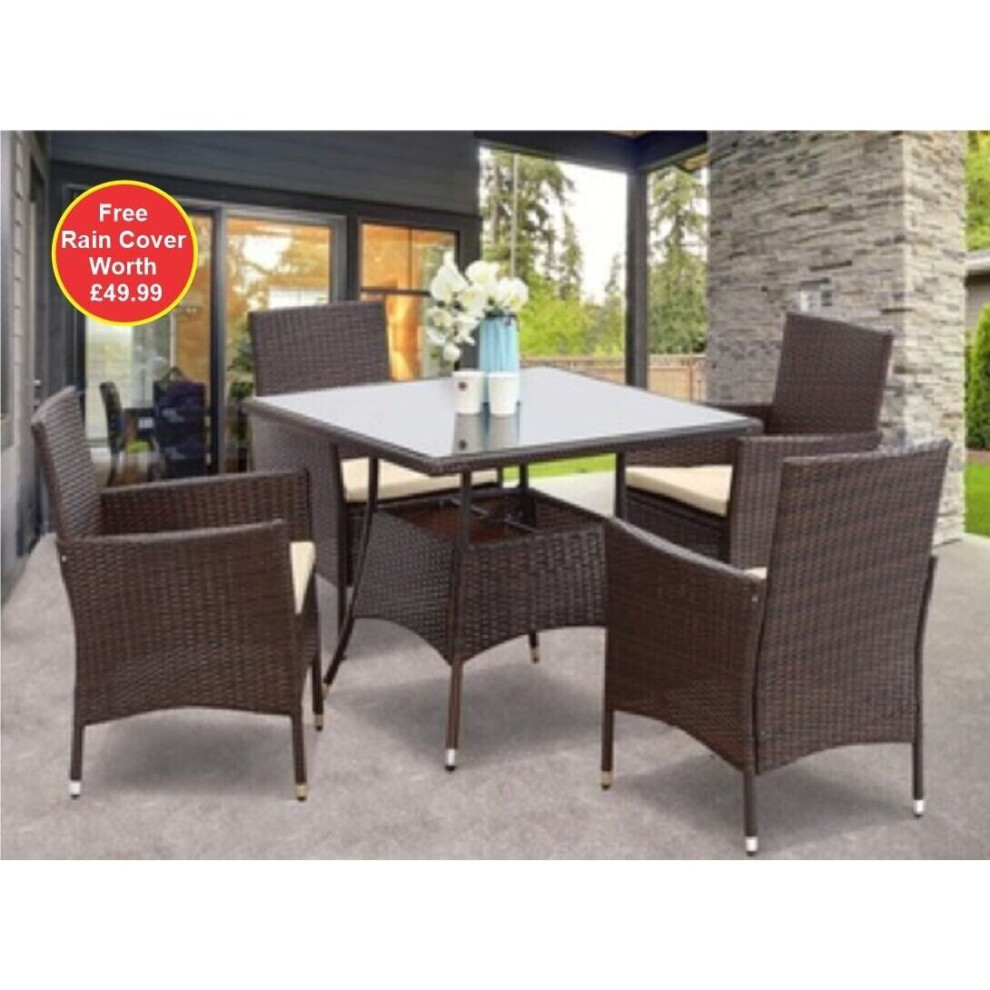 RATTAN 5PC GARDEN FURNITURE DINING SET SOFA CHAIRS TABLE OUTDOOR PATIO