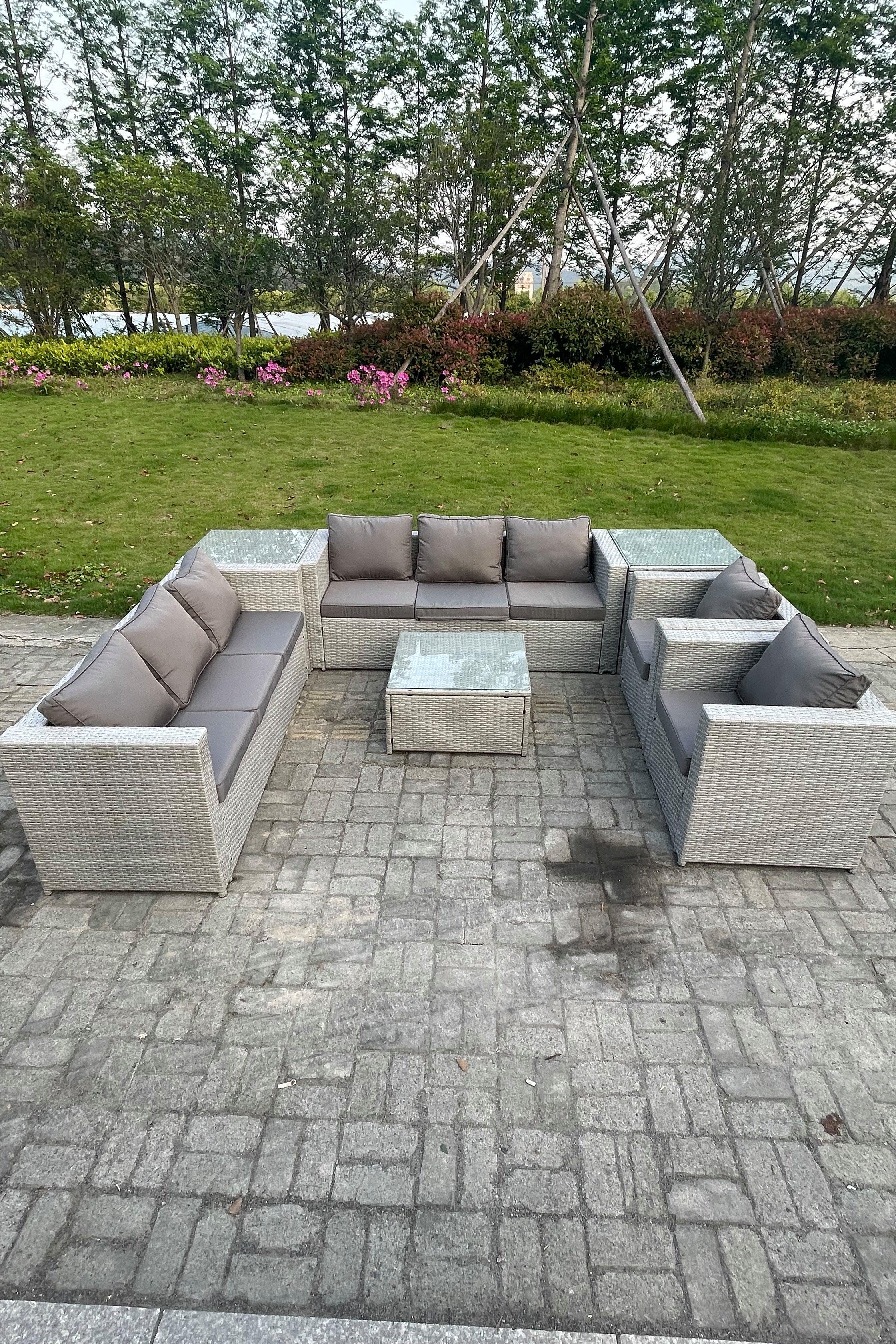 10 Seater Rattan Corner Sofa Set With Square Side Table And Oblong Rectangular Coffee Tea Table Arm Chair