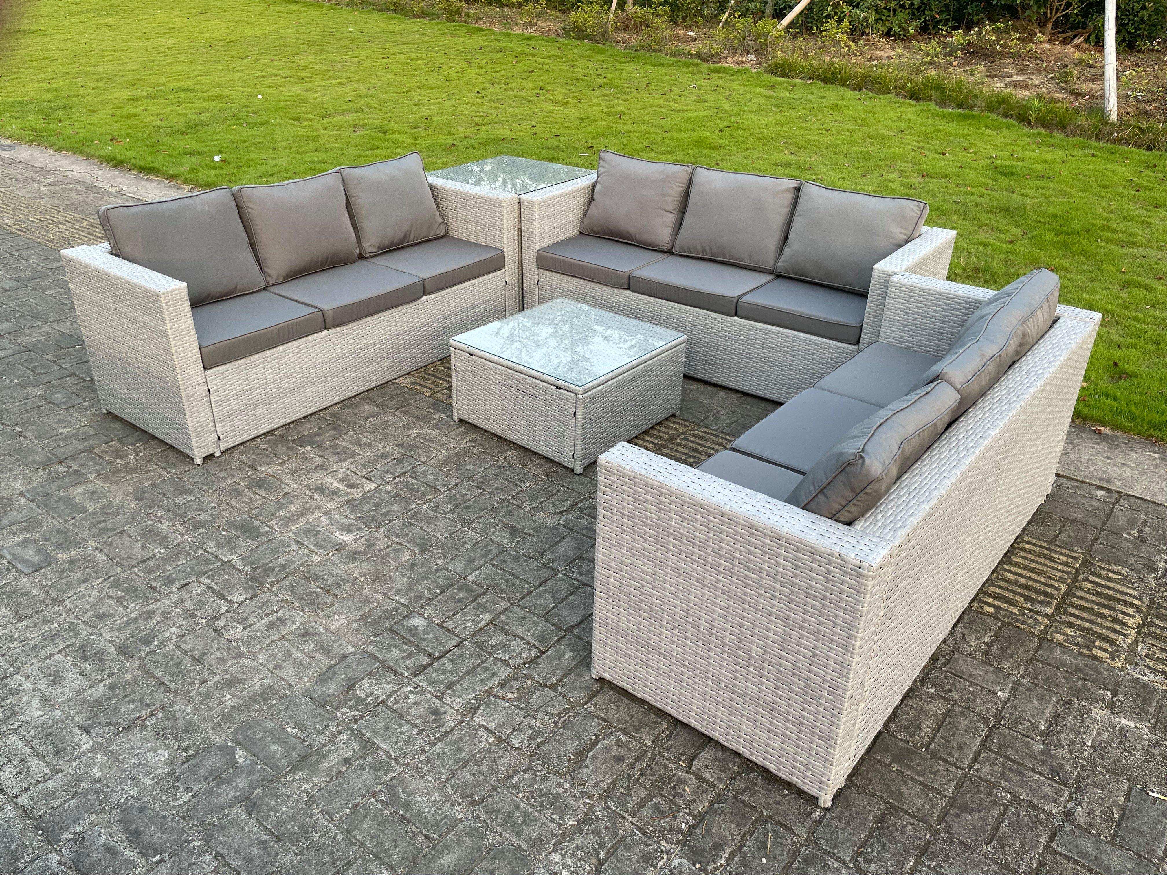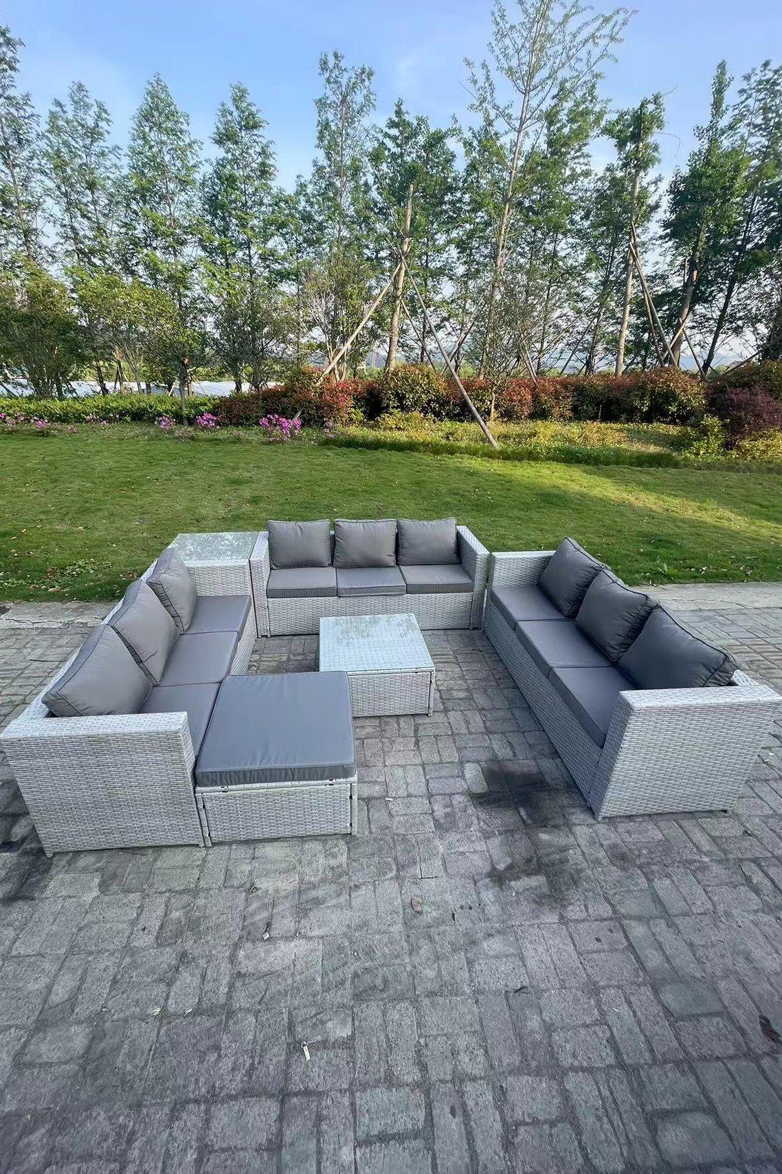 9 Seater Rattan Corner Sofa Set With Square Side Table And Oblong Rectangular Coffee Tea Table Chair