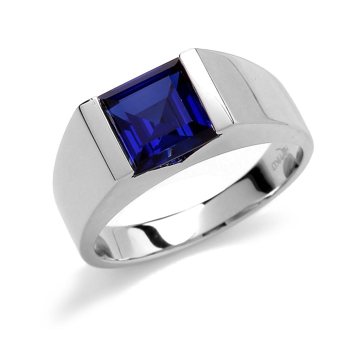 Silver Blue Square CZ Bar Set Square Solitaire Signet Ring - GVR751
