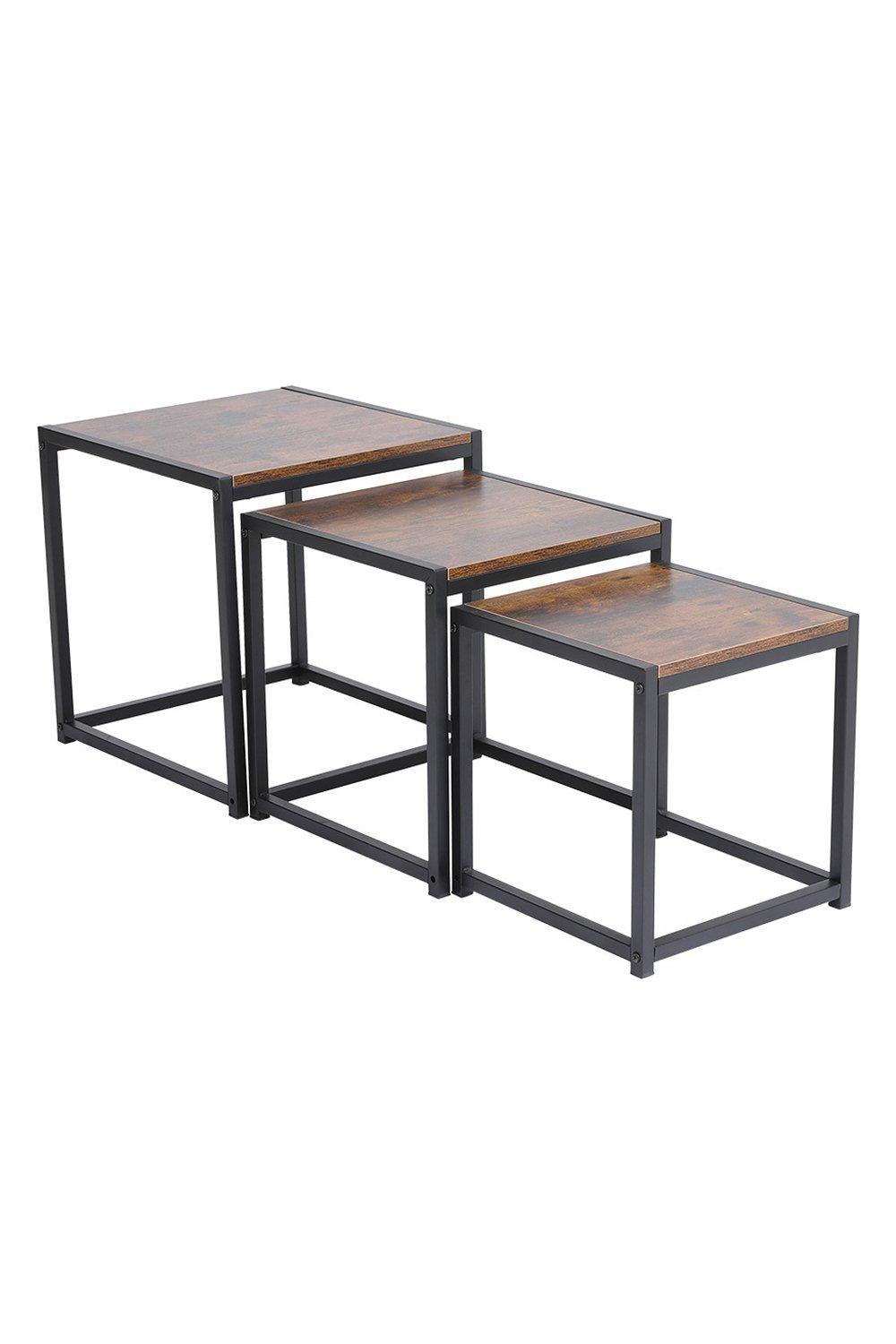 Industrial Style Set of 3 Square Nesting Coffee Side Tables