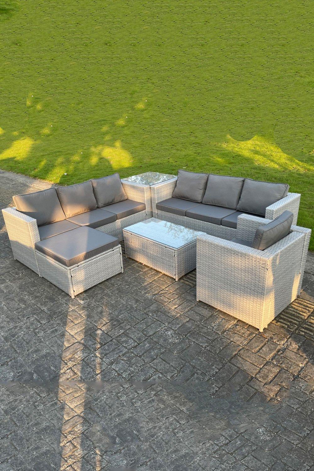 7 seater high back mixed rattan corner sofa set chair square coffee table outdoor furniture