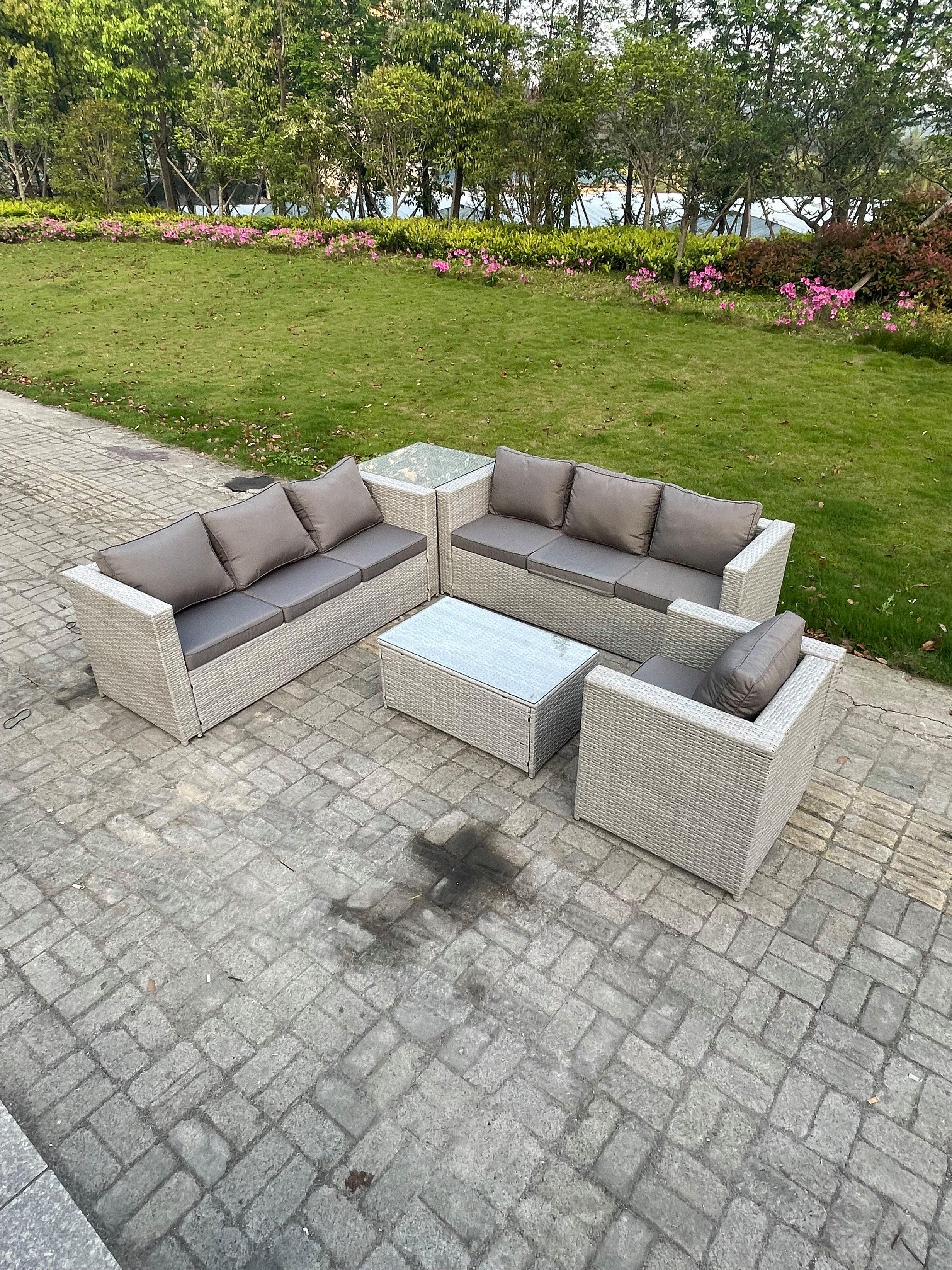 7 Seater Rattan Corner Sofa Set With Square Side Table And Oblong Rectangular Coffee Tea Table Arm Chair