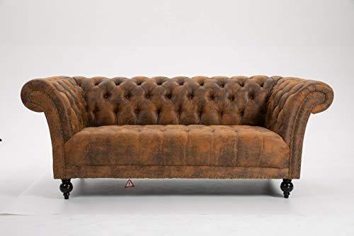 DProT Handmade Pu-Leather Chesterfield Sofa Armchair 1.5, 2 or 3 Seater Settee (2 Seater Sofa Brown)