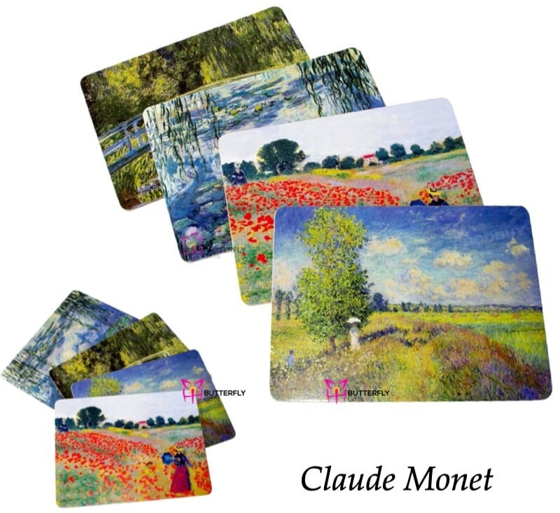 Set of 4 Claude Monet Placemats Artwork 29cm Cork Dining Table Setting Mug Mats