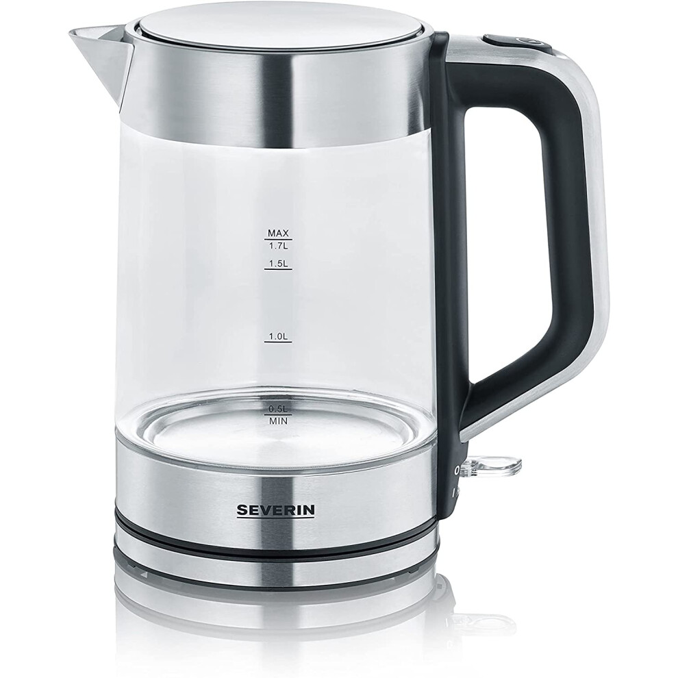 SEVERIN WK 3420 Glass Kettle with XXL Filling Volume 1.7 L, Powerful Compact Electric Kettle with Anti-Limescale Filter, 2200 W, Glass and Stainless