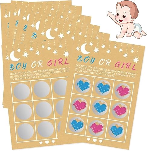 QWEPU 5PCS Gender Reveal Party Spiele, Surprise Sex Reveal Scratch Off Cards - Boy or Girl? Its a Boy Sex Reveal Tic Tac Toe Board, Party Ideas & Scratch off Game