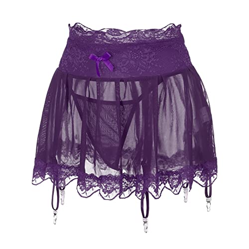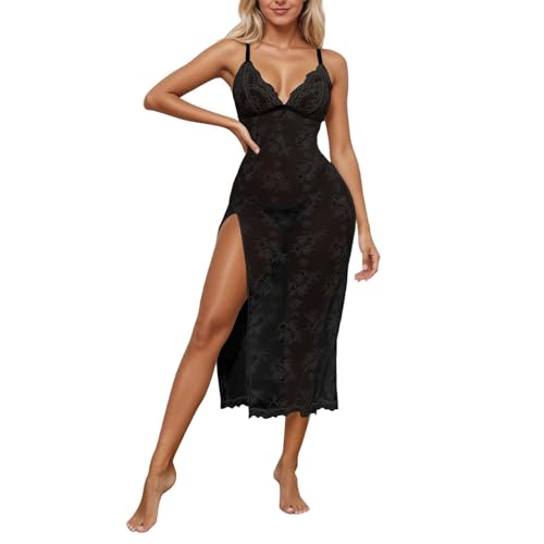 Women Sexy Lingerie for Sex Chubby Elegant Transparent Long Lace Side Slit Lingerie with Thong for Clothing (Black, M)