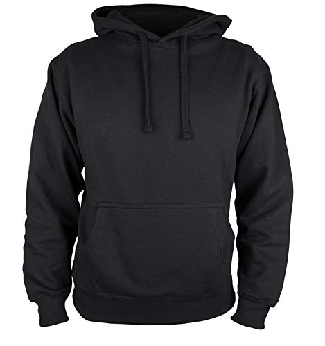 Martes Clothing | Mens Plain long sleeve Hoodie Fleece Pull-Over | Soft and comfy Adult Top Sweatshirt Hoodies | Work and longe wear | Non-zip Up | Uni-Sex | 80% Cotton 20% Polyester (Black) (1, L)