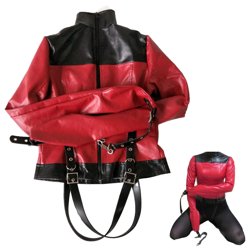 Leather Bondage Straitjacket with Handcuffs Chastity Belt Clothing Restraint Systems Erotic Sex Toys for Women Men(M) Ref: 1831