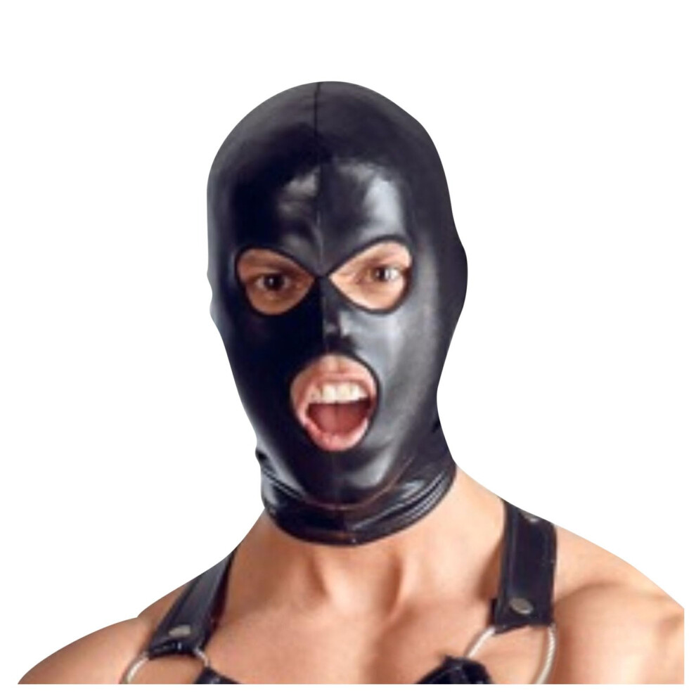 Men's Bondage Leather Mask 3 Hole Erotic Masks Open Eyes and Mouth Club Clothing Cosplay Party Clubwear Plain Wetlook Outfit Adult Sex Toy Black M