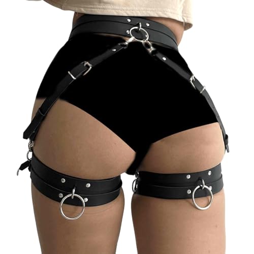 Sex Bondage Restraints Set PU Leather Punk Body Harness Adjustable Leg Straps Waist Chain Belt Layered Strappy Thigh Leg Chain Ring Gothic Garter Belt Body Chain BDSM for Couple Beginner SM Game Play