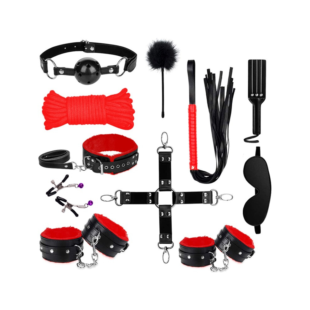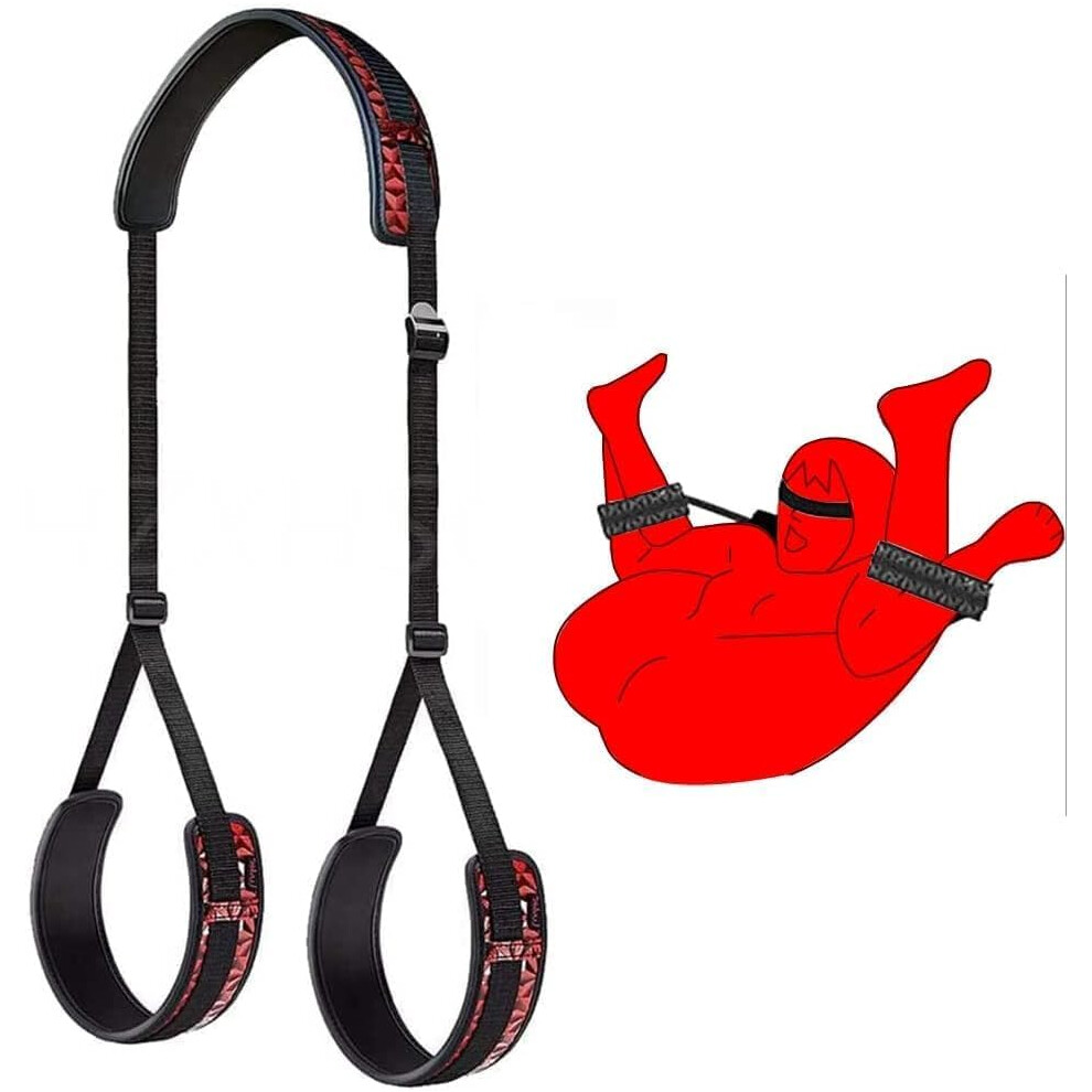 (Red) 11PCS SM Toys for Couple Sex Bondaged Bed Restraints Tied Down Wrist&Ankle Sex Swing Hanging Sling Adjustable Neck and Leg Cuffs BDSM Kit