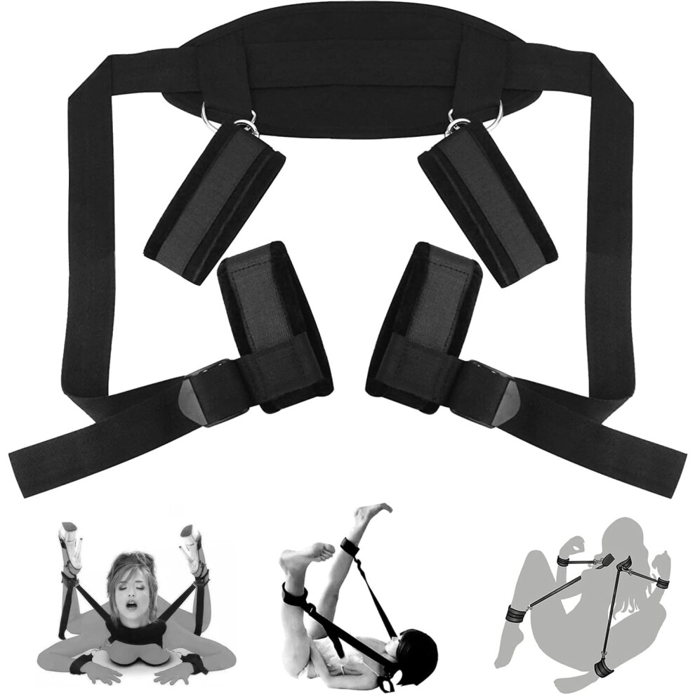 BDSM Sex Bondage Restraints Set, Adjustable Wrist and Thigh Cuffs, Soft Bed Restraints Kit for Couples Unisex