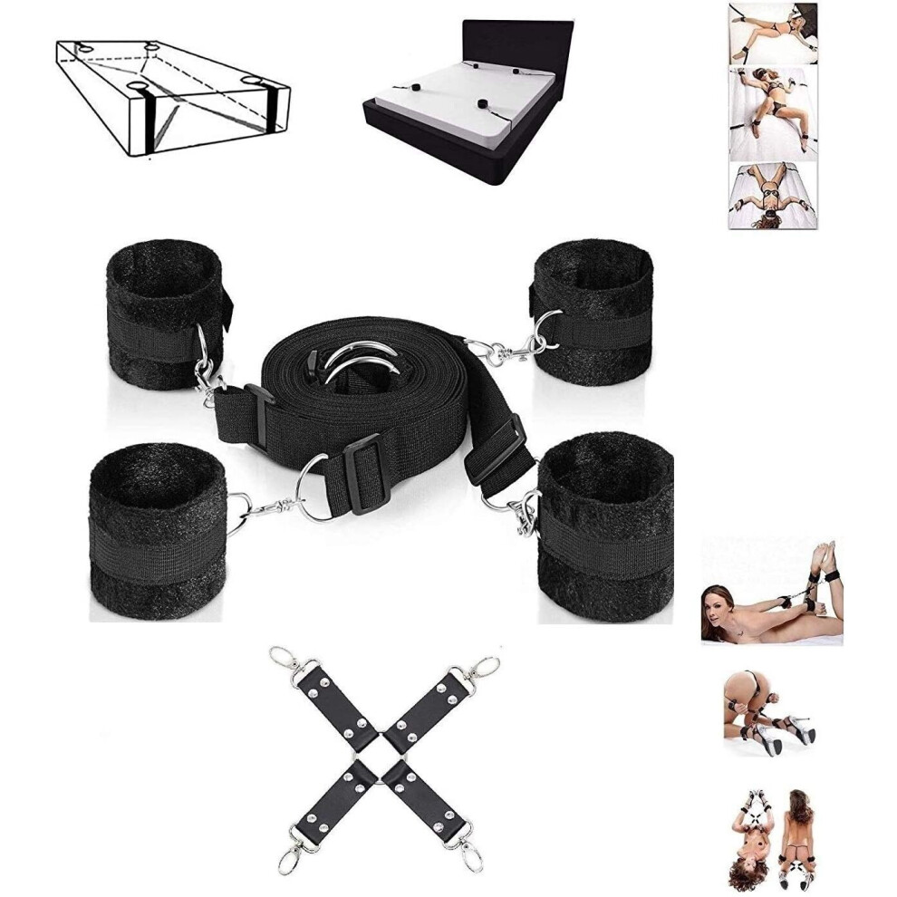 Bondage Bed Restraints Sex Set Couple Play BDSM Bed Restraints System (Restraints Black)