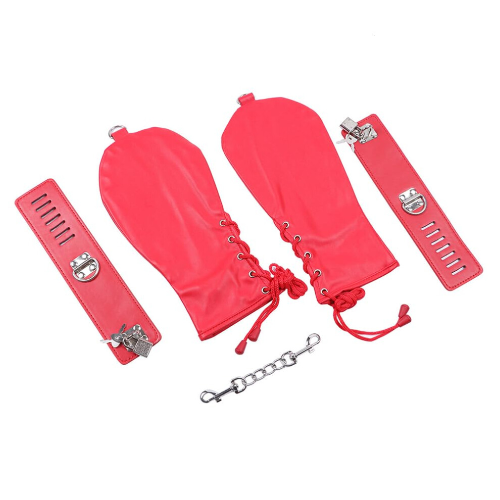 (Red) BDSM Bondage Set Restraints Sex Toy Extreme Sex with Handcuffs and Eye Mask for Couples Collars for Women Sexy Necklace Collar with Wrist Cuffs