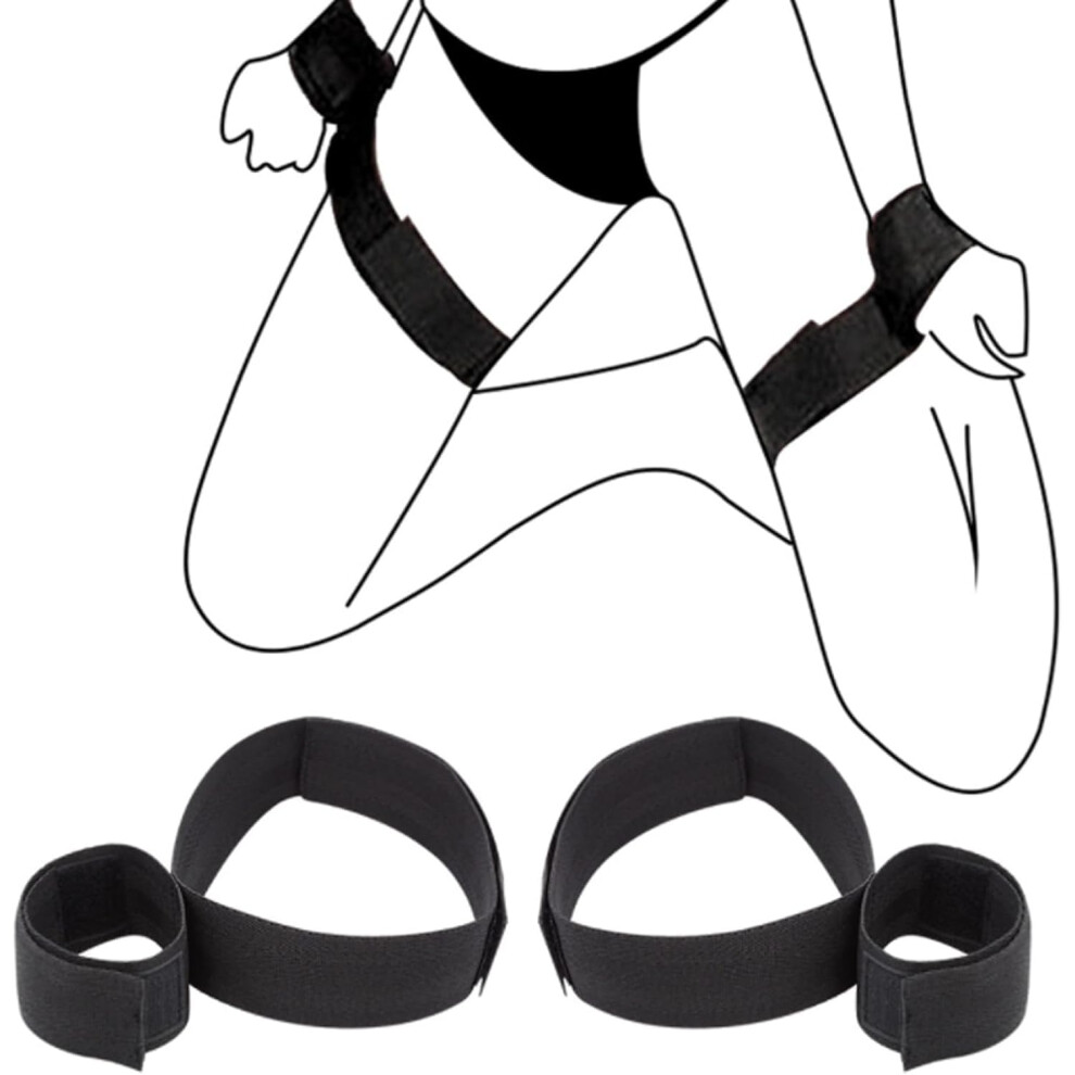 BDSM Sex Bondage Restraints Set - Adjustable Soft Leather Wrist, Thigh, and Ankle Straps for Couples, Unisex, Black