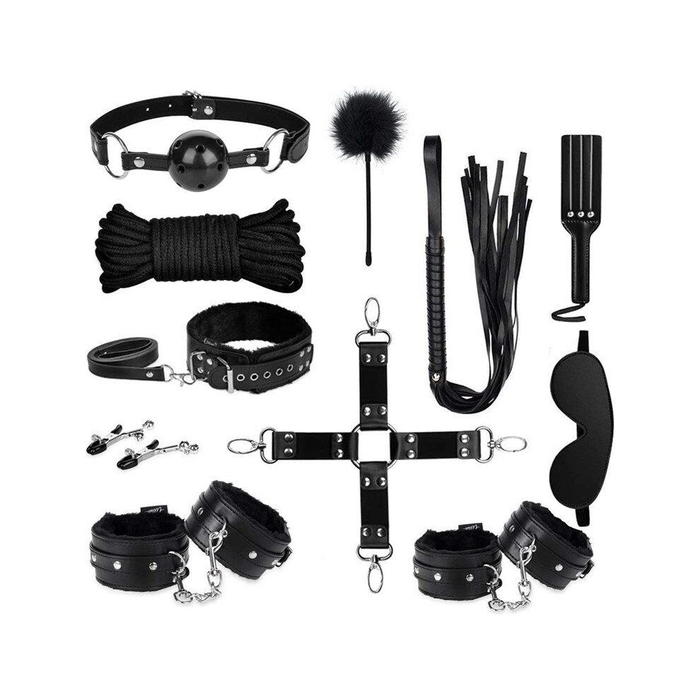 (Black) 11PCS SM Toys for Couple Sex Bondaged Bed Restraints Tied Down Wrist&Ankle Sex Swing Hanging Sling Adjustable Neck and Leg Cuffs BDSM Kit